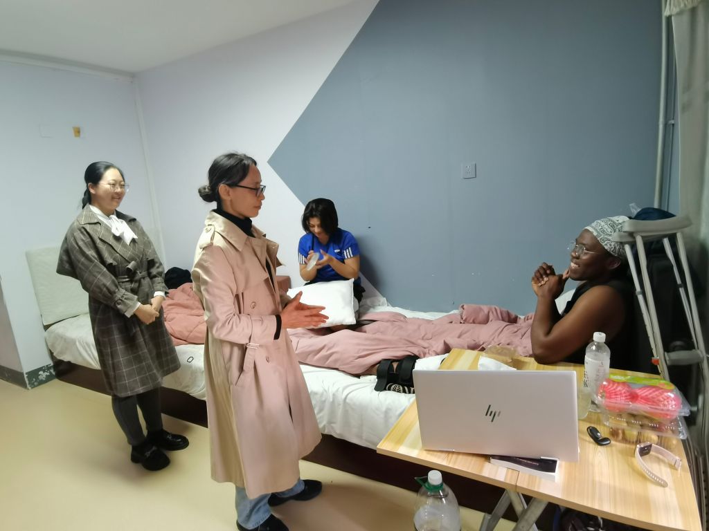 走访过程中,院领导与新同学亲切友好交流,详细询问了大家来华后的生活适应情况、饮食习惯以及初入大学的感受,勉励同学们要尽快转变角色,熟悉校园环境,与来自五湖四海的同学互相学习、共同进步,珍惜大学时光,做好学业规划。老师们对同学们提出的生活保障问题和学业问题逐一回应,并持续做好跟进服务。