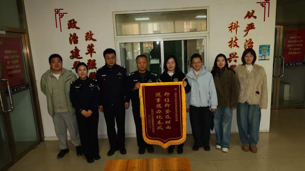 交流座谈中,袁泓详细介绍了学校国际学生规模、国籍构成及日常管理情况,重点向派出所长期以来在国际学生住宿登记、日常管理等方面给予的支持和高效服务表示感谢,并送上锦旗。